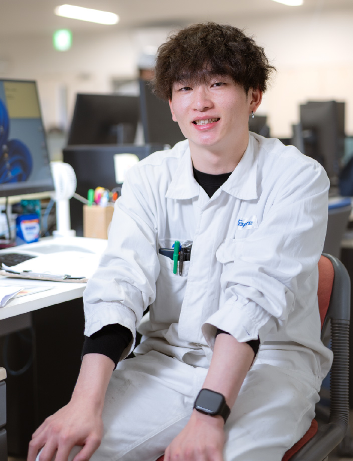 品質管理部で品質保証・精度保証・強度保証を担当しています。幅広い知識と経験を身につけながら、問題を解決できた時にやりがいを感じます。入社後は品質管理とは何かを学び、日々の業務を通じて理解を深めています。目標は品質を安定させ、より良い製品をお客様に届けること。頼れる先輩が多く、困った時に助けてもらえる環境も魅力です。
